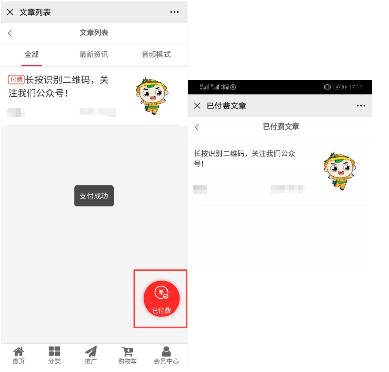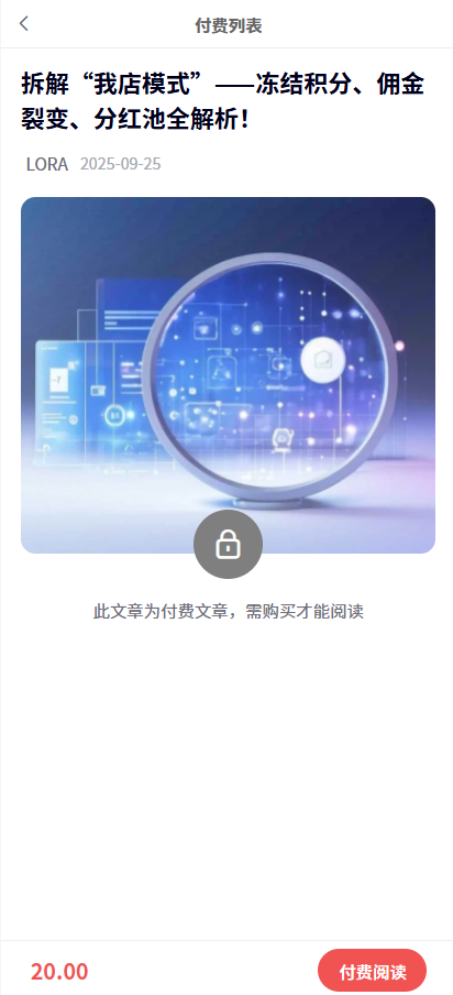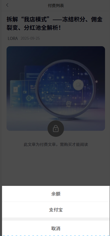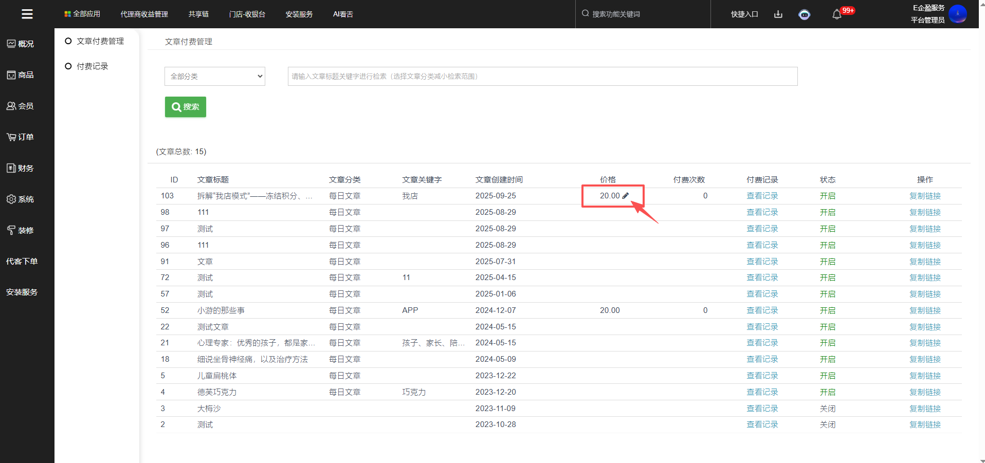 该功能需要配合文章营销插件使用,选择文章,设置付费价格,用户前端访问文章详情需要付费才能查看!