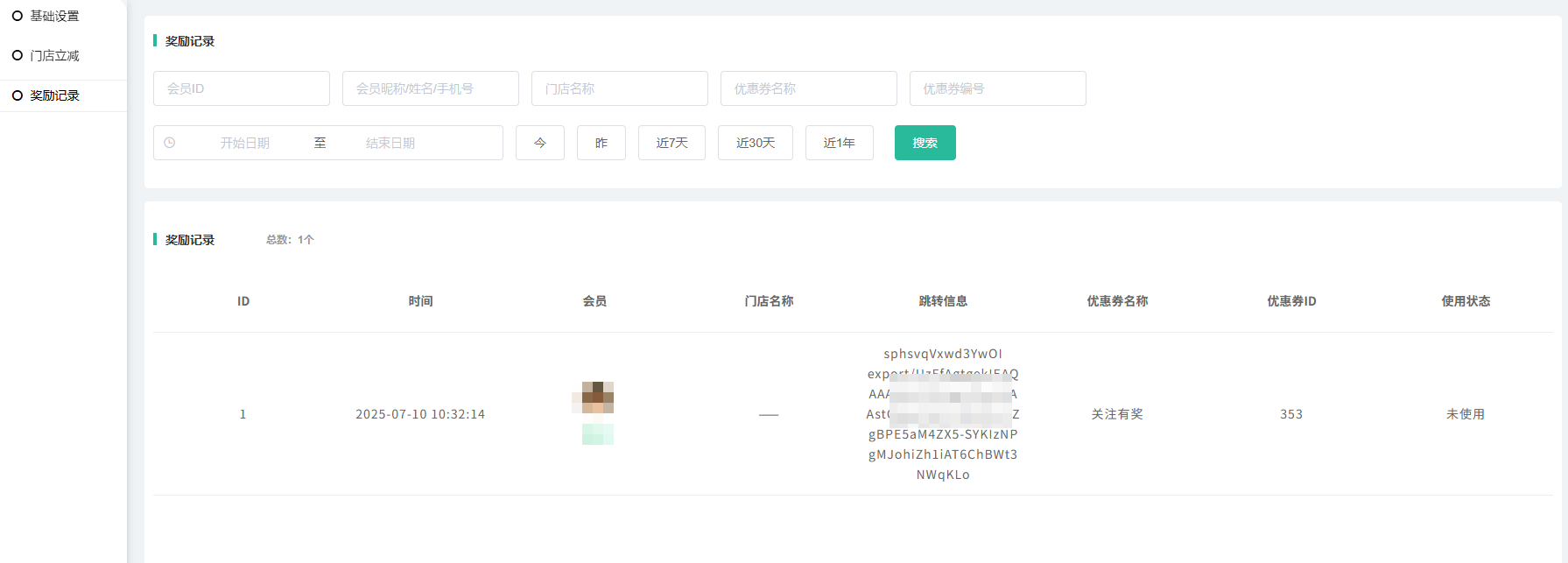 5、奖励优惠券:选择商城发布的优惠券,仅支持选择一张
