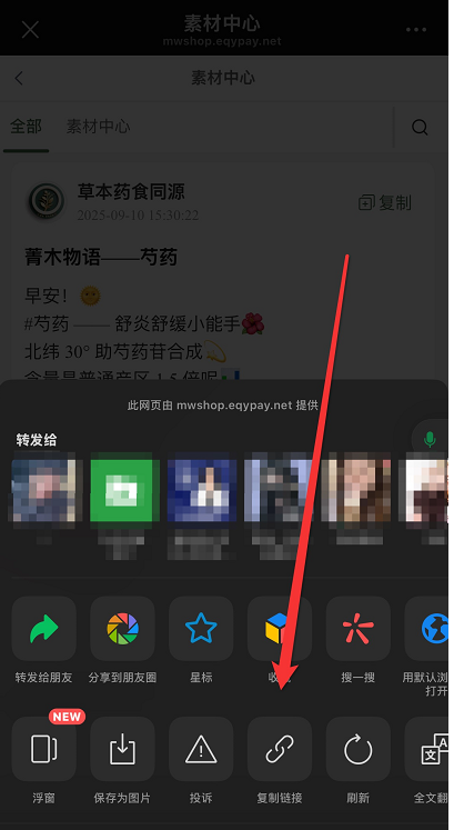 这个是复制出来的链接:https://mwshop.eqypay.net/dons/yun_shop/?menu=#/others/material_center?i=189&type=1&shop_id