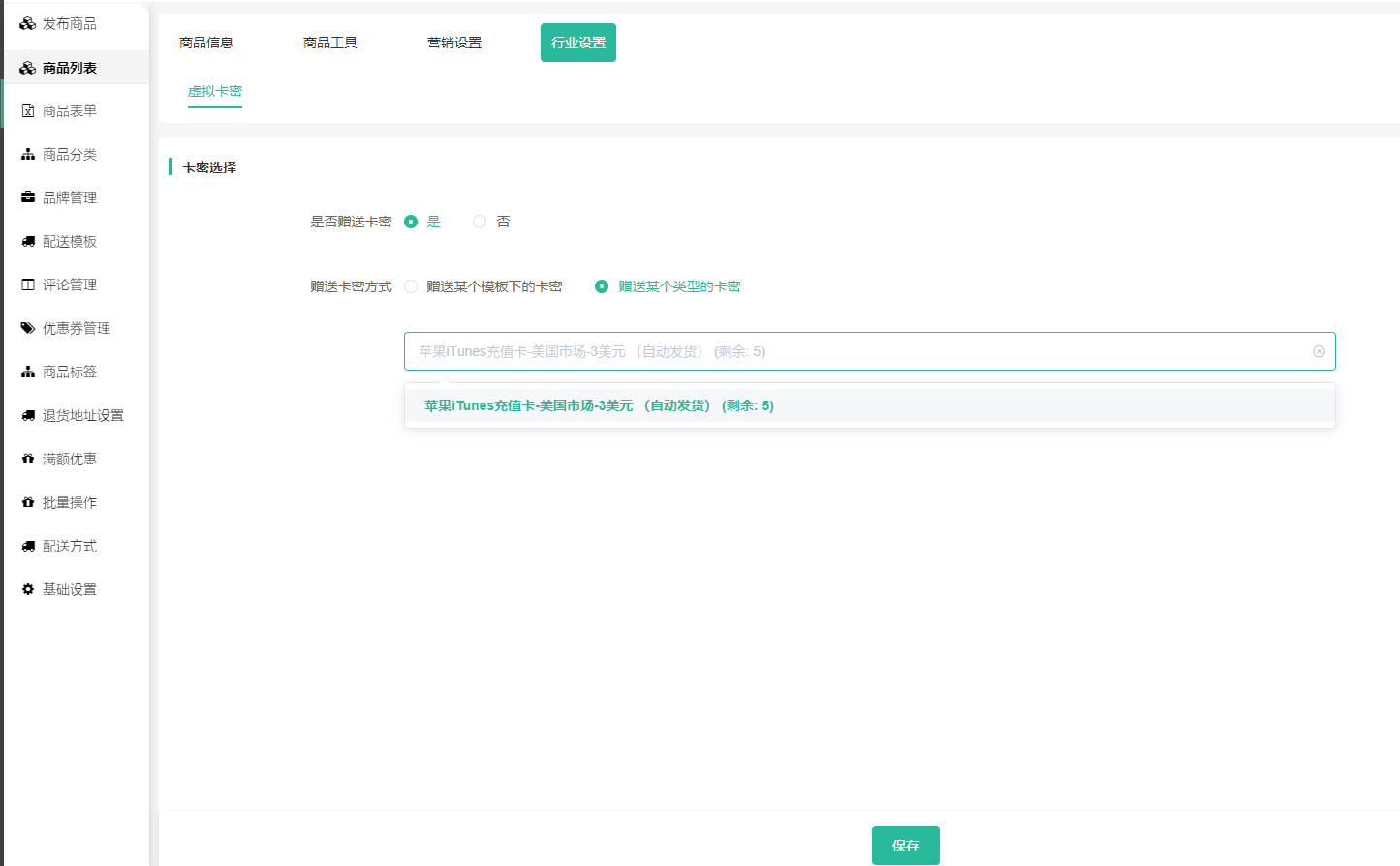 三 、 商品列表需要--编辑商品-虚拟卡密,购买这件商品是否赠送卡密