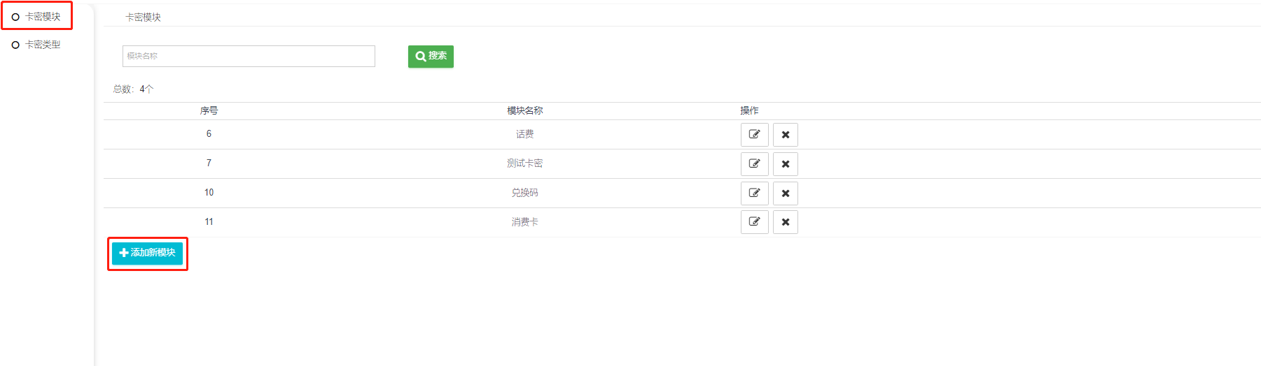 赠送卡密方式:1. 赠送某个模块下的卡密 2. 赠送某个类型的卡密
