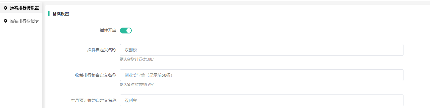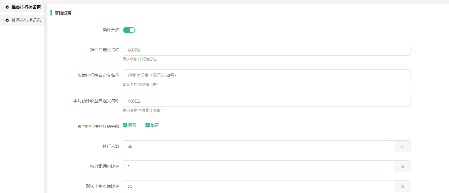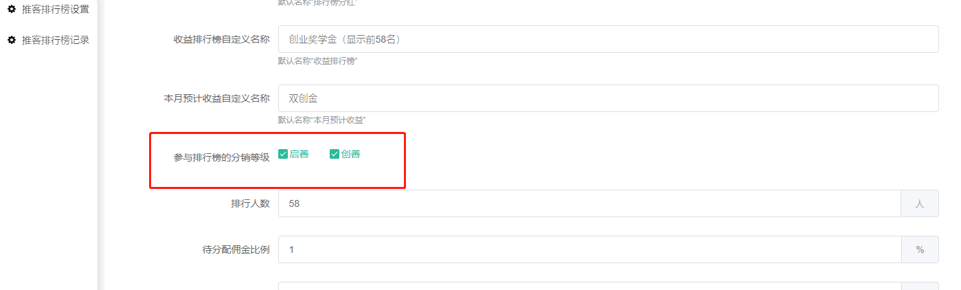 上榜的会员获得的收益比例。可以设置独立规则,第1名 第2名 第3名 第4名....(可自由增加)