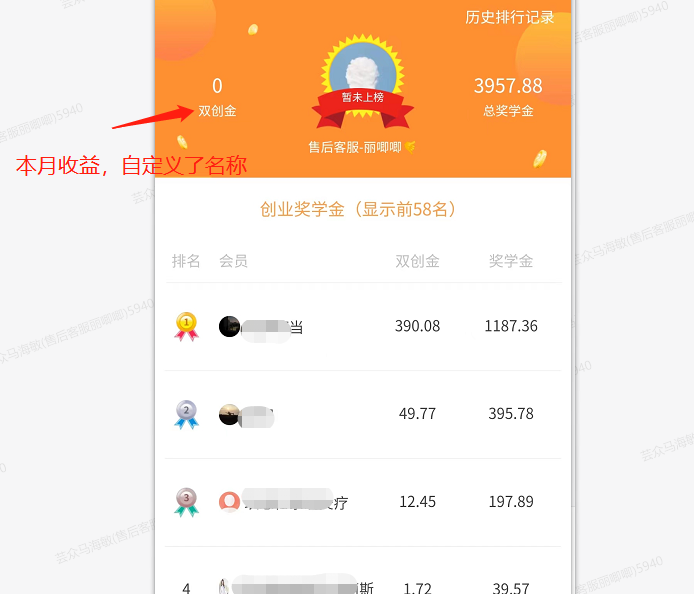 每一名设置获得上榜奖金,上榜奖金为总分配金额的X%,订单退单进行减少,实时变化,没有设置个人上榜奖金的其他人,走默认上榜收益比例平分X%