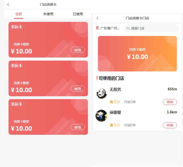(1)消费卡可支持多家门店核销,多家门店共同支付消费卡核销时,会员即可根据自己的距离选择较近的门店核销。